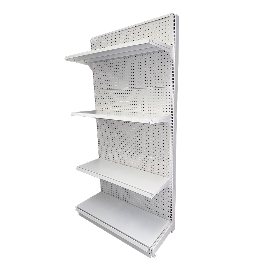 This supermarket shelf features a beautiful and elegant design with a sturdy structure and versatile specifications. The single and double-sided shelves can be combined for various configurations, with single-sided shelves pairing well with corners and double-sided shelves offering semi-circular matching options. The adjustable shelf spacing enhances its refined appearance.